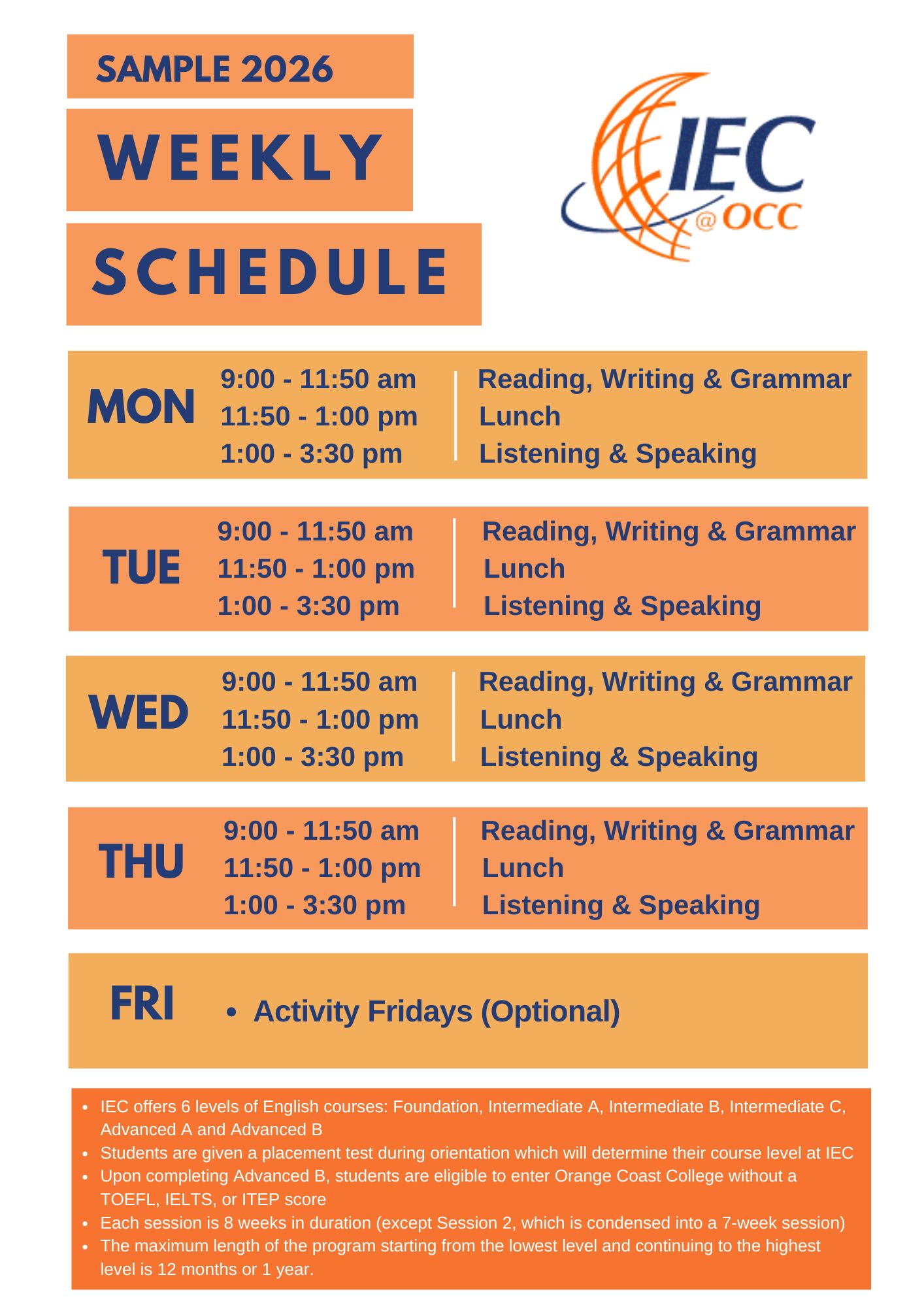 2026 IEC@OCC ENGLISH PROGRAM DATES